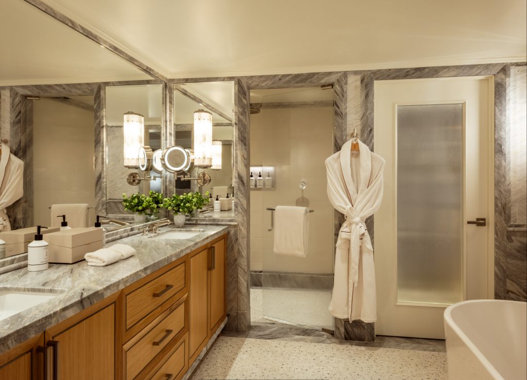 The accommodation, ranging from 1,200 to 1,300 square feet, boast spacious one-bedroom layouts equipped with king-sized beds and ensuite bathrooms with double sinks and deep soaking tubs. Inspired by New York’s Bow Bridge, the two-bedroom Surrey Suite provides an equally refined experience.