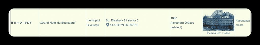 Insider Plus consulted the Lista monumentelor istorice din România (Romanian heritage site, known in short as Romania LMI Code) and extrapolated the reference to this Hotel.