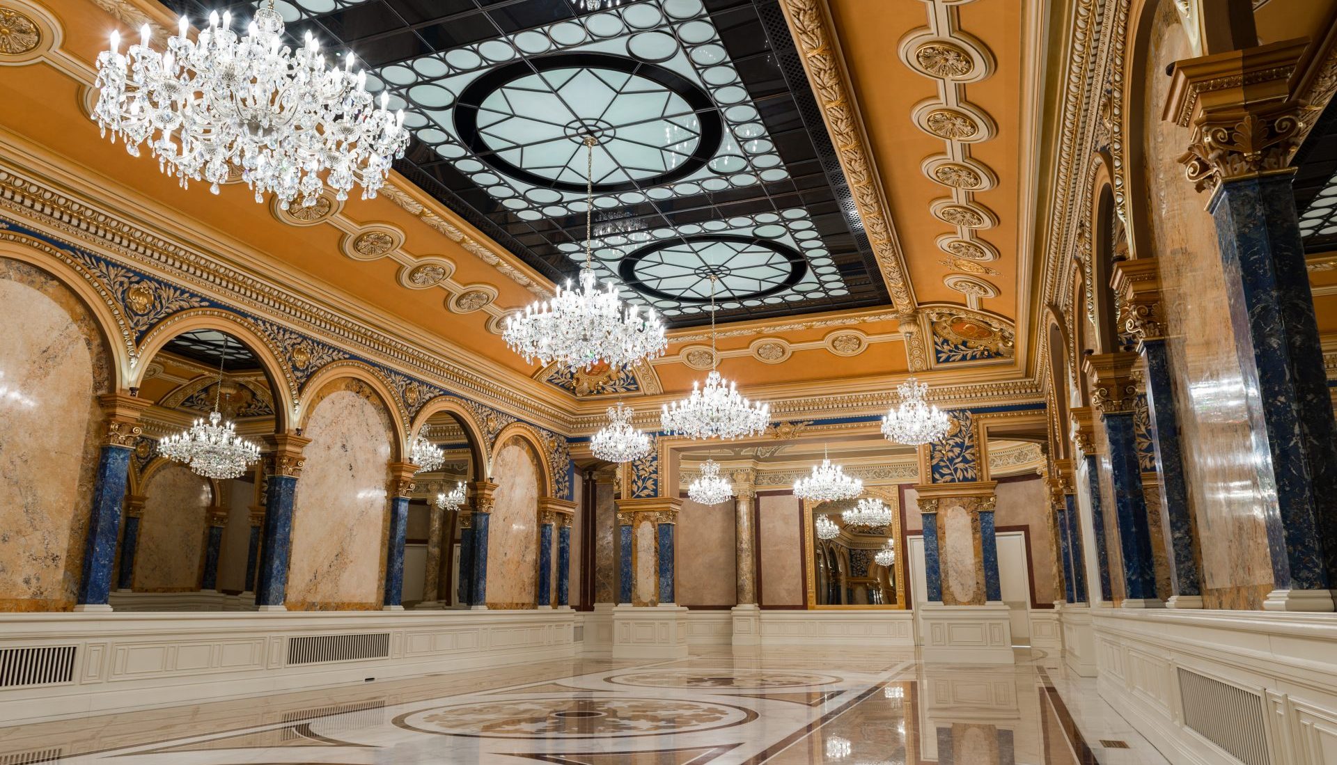 Ballroom of the Grand Hotel du Boulevard, Bucharest. The hotel will open as Corinthia Hotel Bucharest in December 2019.