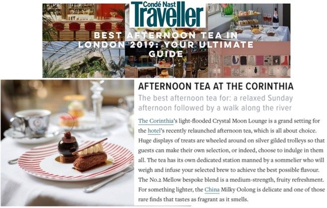 The refreshed afternoon tea offering in Corinthia London’s Crystal Moon Lounge continues to go from strength to strength and extensive coverage ranges from mentions in US magazine Travel + Leisure and A&E Middle East to round ups of the ‘Best afternoon tea in London 2019’ on the Condé Nast Traveller website and ‘London’s best luxury afternoon teas’ on The Telegraph’s website.