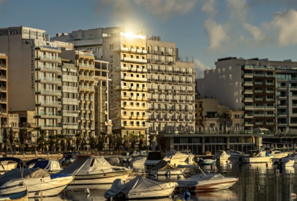Situated in The Strand, Gzira, opposite the Manoel Island, this 106-roomed hotel strategically enjoys easy access to a plethora of nearby top-notch cafés, bars, and eateries for all tastes and budgets and is only a few minutes walk from Sliema, the leading shopping and dining centre in Malta. Guest rooms dimensions vary from 28 square meters for Superior Double Rooms to the 47-square-meter Deluxe Suite Double.