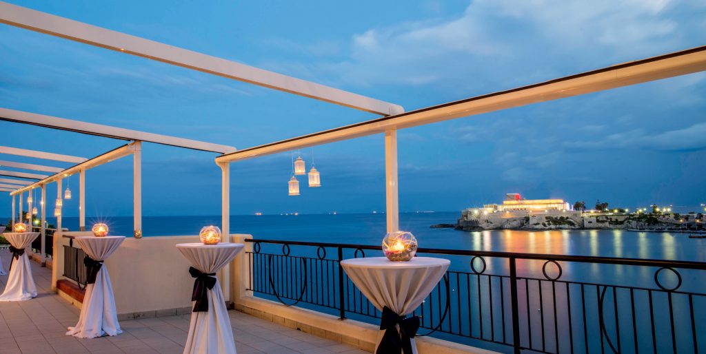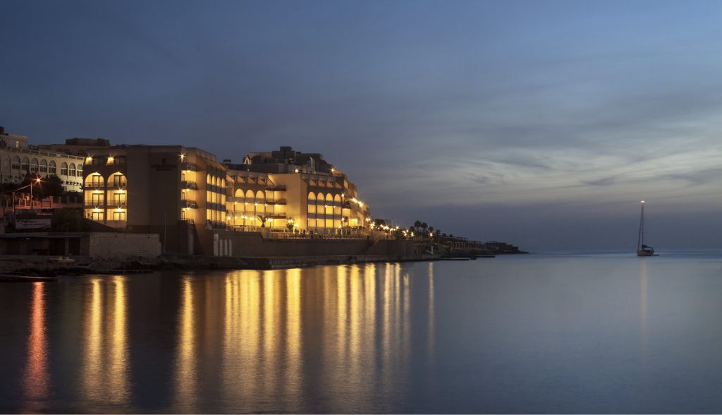 The hotel’s website states: Ideally located at the edge of the sparkling Mediterranean, the Marina Hotel Corinthia Beach Resort is the perfect retreat for an island holiday. Overlooking the striking St George’s Bay and just moments from St Julian’s, Malta’s cosmopolitan hub, the hotel is conveniently located for exploring this sun-drenched island’s many attractions.