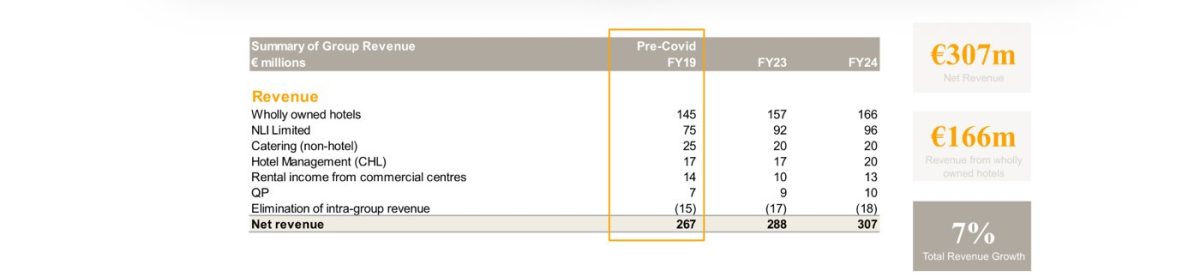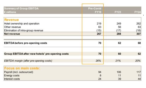 All hotels have exceeded pre-pandemic performance. Performance of Corinthia St Petersburg is still affected by continued geopolitical tensions. The hotel in Prague has been fully leased to a third party in FY24 and has thus been excluded.
