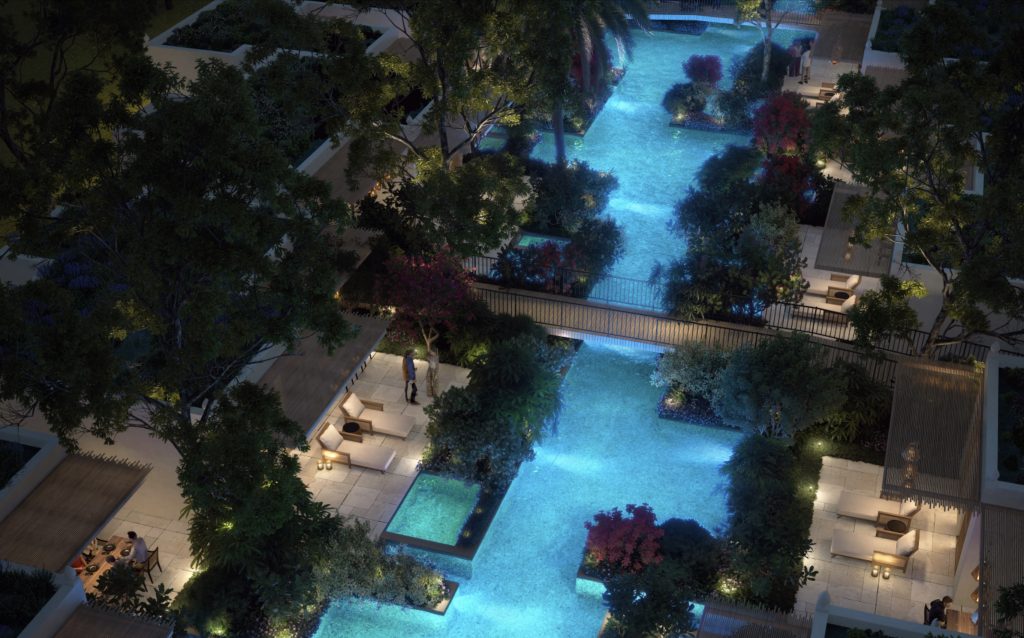 The resort will include a number of environmentally friendly features such as green-roofs, passive climatisation solutions that diminish consumption, heat recovery systems that benefit both the hotel and the residences, as well as the sitewide collection and re-use of both rain and grey-water which will allow us to efficiently irrigate the resort’s extensive gardens.