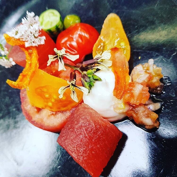 Heritage tomato, watermelon, goats cheese, with lemon