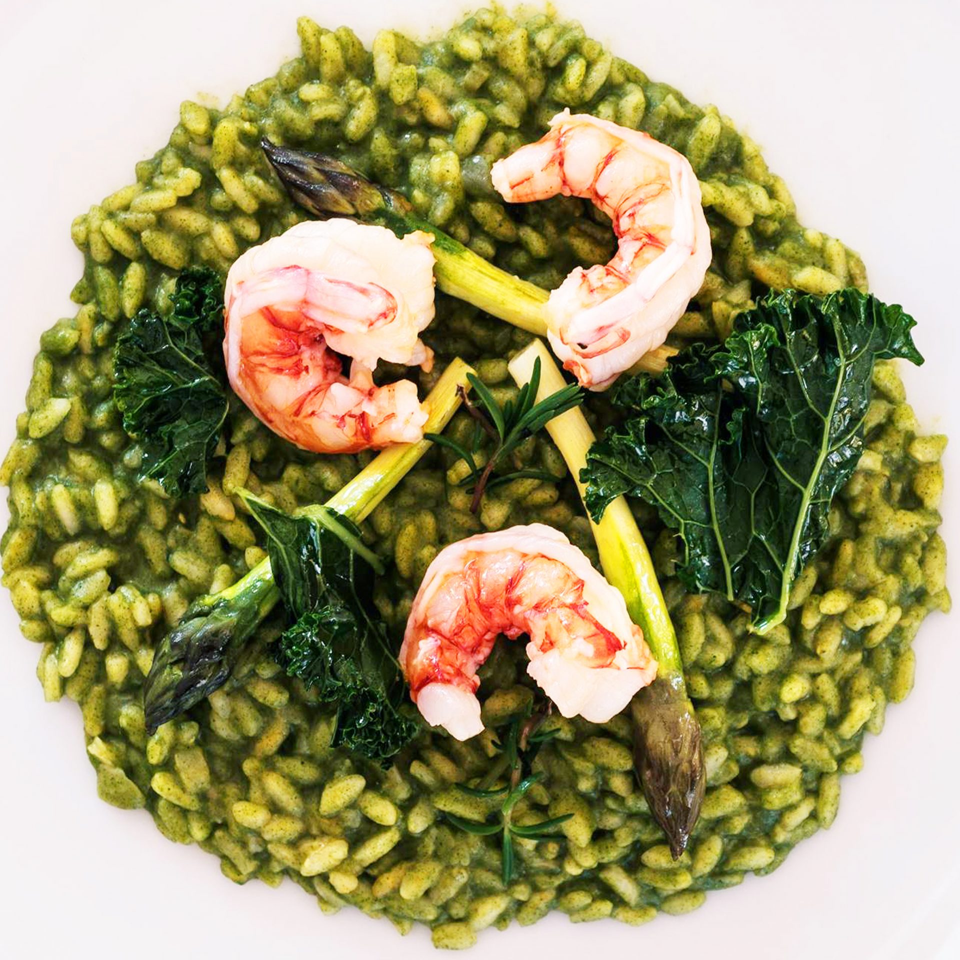 Prawn, kale and asparagus risotto