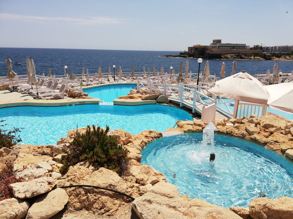 Naturally, on the hot summer Maltese days, the refreshing swimming pools offer an idyllic setting where guests relax and compete for a good tan. An indoor pool with a spa, the main pool with a backdrop of the Mediterranean Sea, and another two pools at the Edge for all ages, guarantee a place for everyone.